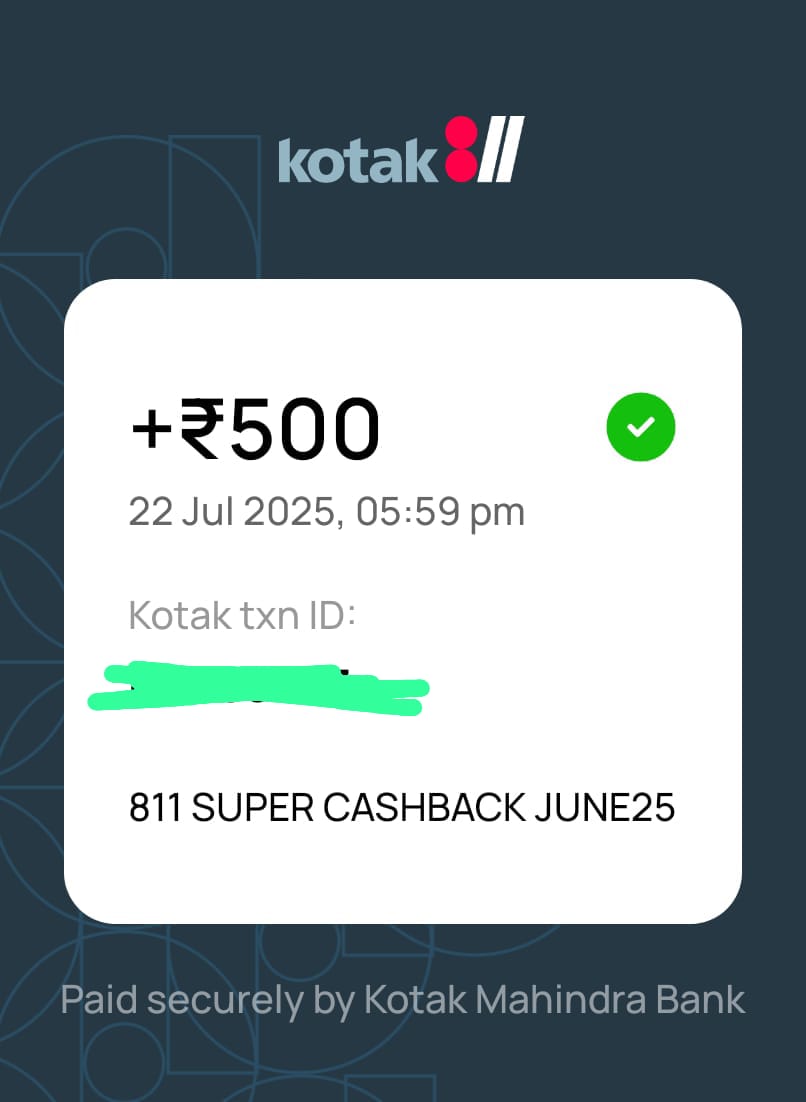 The best thing about Kotak811 is that you can check the cashback given or not directly via their application.