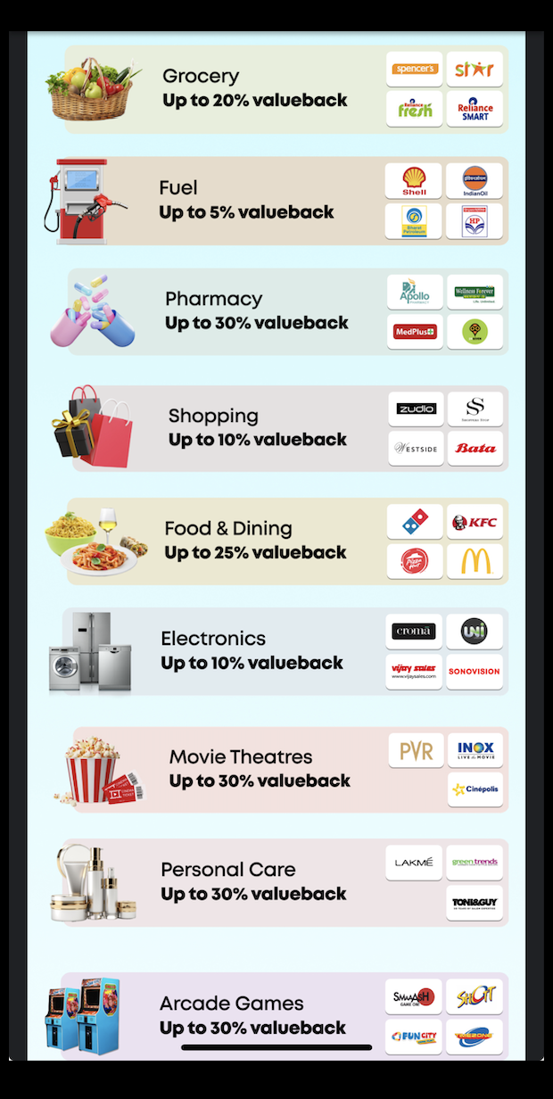 You get 12 percent off on cleartrip and Yatra. The list goes on. It also gives offers on Zomato, 10% off on Zudio, 9% on westside, etc. It will be perfect till you figure out which benefits you want more and then you can get a credit card to optimize for that while still keeping this card for other spends, because this is lifetime free.